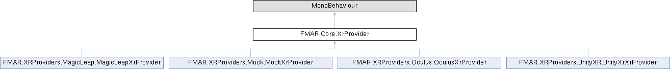 Generic class representing an "XR Provider" which is a FMAR concept based on the Unity XR Management system. XRProviders are activated based on the current platform and are a crucial piece to the cross-platform support of FMAR.